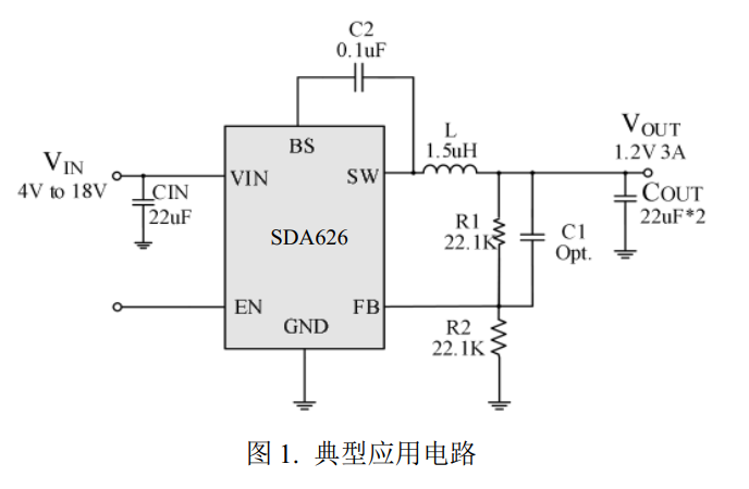 SDA626 是一款采用固定导通时间控制技术(COT) 的同步降压转换器。